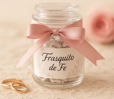 Un detalle lleno de fe para una boda inolvidable. Cada frasquito lleva promesas de Dios para bendecir el matrimonio y a cada invitado 🤍