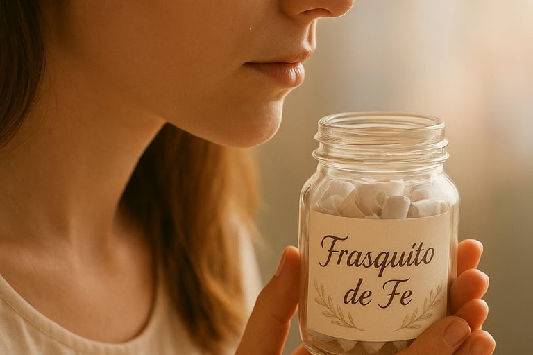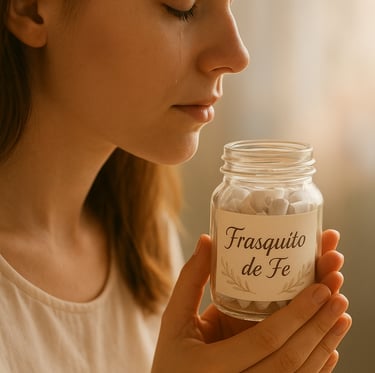 Frasquito de Fe te acompaña cada día con una Palabra clara, dulce y llena de propósito, para ayudarte a vivir tu fe de manera simple, constante y profunda.