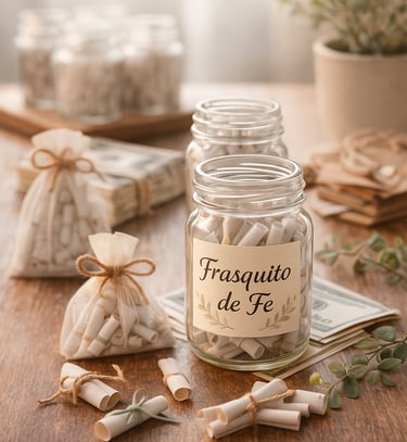 Transforma fe en propósito — y propósito en ingreso. Crea frasquitos devocionales y genera una hermosa renta extra sirviendo a Dios y bendiciendo a otros 🌿🤍