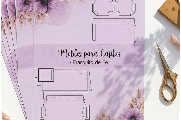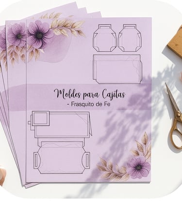 Plantillas listas para imprimir y recortar para hacer cajitas preciosas donde podrás guardar tus versículos o entregar tus frasquitos como regalo.